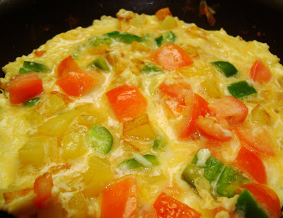 I made some sort of fritata/omelet this morning which also helped my mood a bit. I didn't go all out with the ingredients since it was just me eating. Hubby had his corn flakes already and I'm limiting his egg intake.